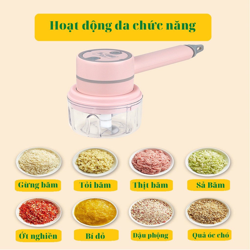 Máy đánh trứng xay tỏi ớt 3in1 mini sạc USB tiện lợi, máy đánh trứng xay tỏi ớt cầm tay đa năng