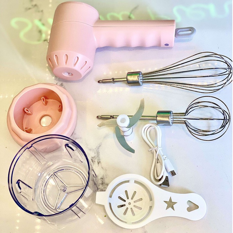 Máy đánh trứng, xay thịt, xay tỏi ớt cầm tay mini đa năng không dây cao cấp 4 trong 1.Một chiếc máy đánh trứng trộn bột đánh kem cầm tay (hay còn gọi là máy trộn) hay còn có thể gọi là một chiếc máy xay thịt, xay tỏi ớt đa năng. Là một vật dụng không thể thiếu trong căn bếp của những cô nàng, bà mẹ mê nội trợ, đặc biệt là đam mê việc làm bếp.
