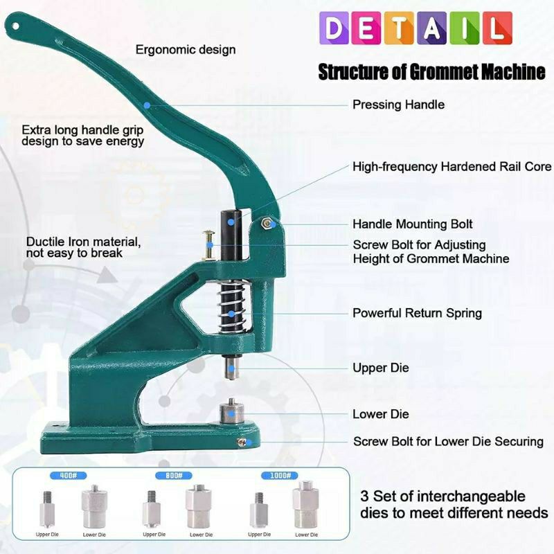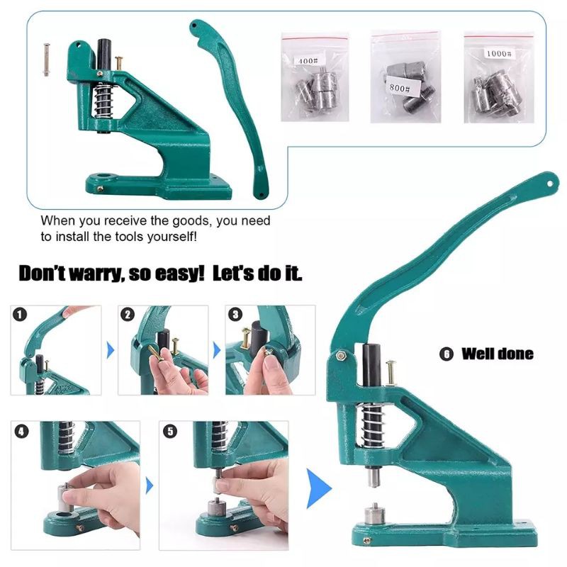 Máy dập cúc KAM có thể đóng được nhiều loại cúc: cúc dập nhựa, cúc bấm vành, cúc bọc vải, làm khoen ô rê, cúc bấm 4 thành phần..... mà chỉ cần sử dụng các loại cối tương ứngSản phẩm chỉ bao gồm máy, KHÔNG kèm theo bất kỳ loại cối và bất kỳ loại cúc nào