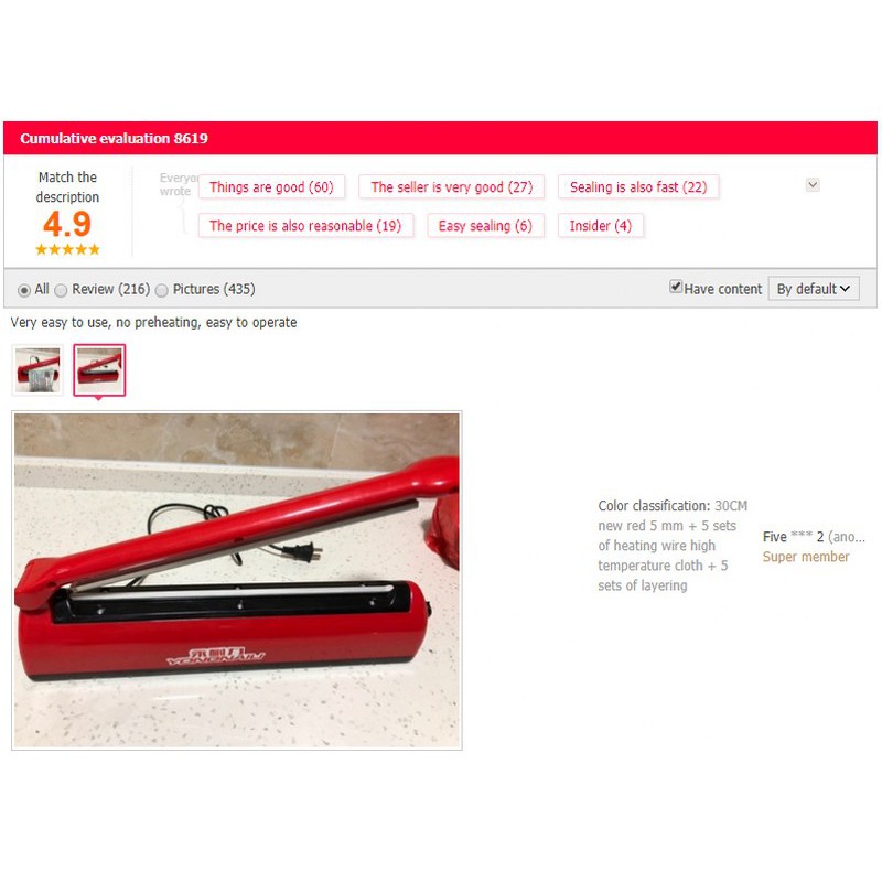 Nhà cửa & Đời sống > Dụng cụ nhà bếp > Dụng cụ hút chân không || Máy dập hàn túi nilong, túi bạc, túi zip v.v. (Màu đỏ, Dài 30cm, Mối hàn rộng 5mm) - Loại xịn, BềnCòn hàng