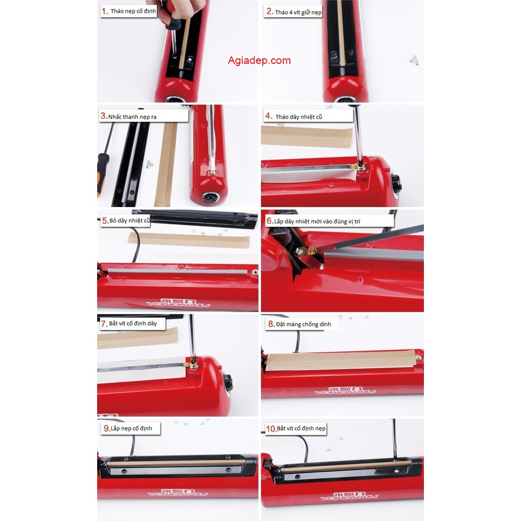 Giới thiệu Máy dập hàn túi nilong, túi bạc, túi zip v.v. (Màu đỏ, Dài 30cm, Mối hàn rộng 5mm) - Loại xịn, Bền