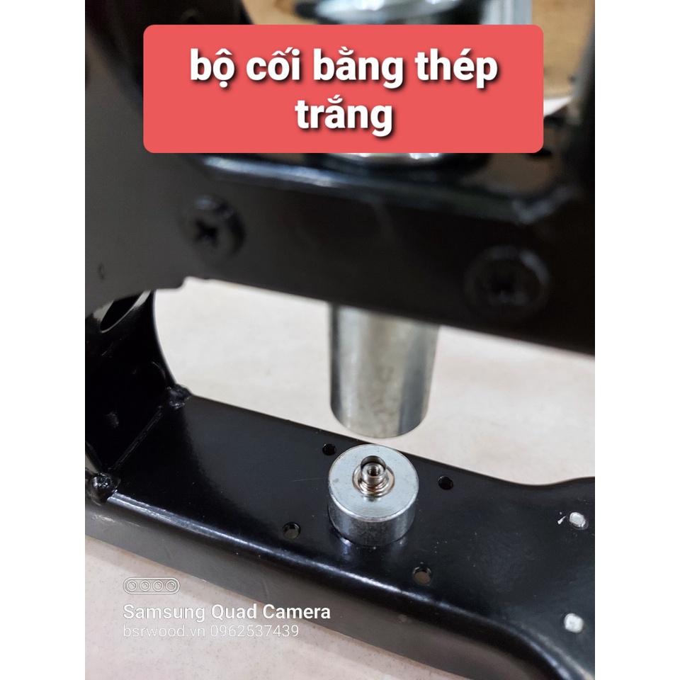 Đặt ngửa khoen vô bộ cối phía dưới rồi mới luồn miếng vật liệu và lót long đền vô