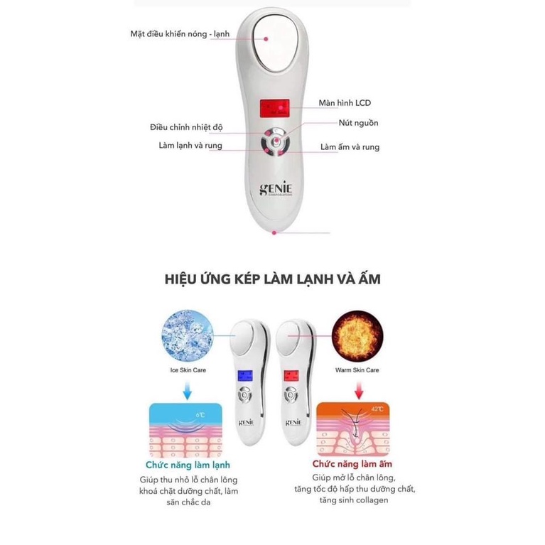 MÁY DẪN TINH CHẤT ĐIỆN DI NÓNG LẠNH GENIE- Giúp da hấp thu dưỡng chất nhanh hơn thông thường.