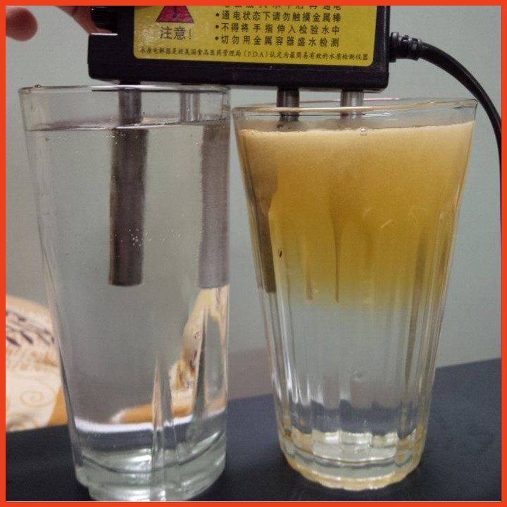 + Nếu điện phân bằng máy nói trên trong 3- 5 giây thì nước uống tinh khiết không đổi mầu