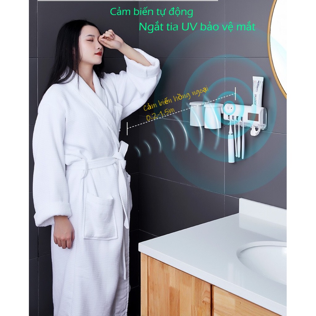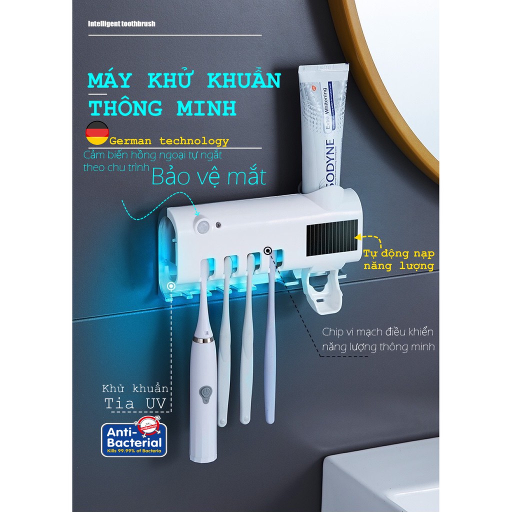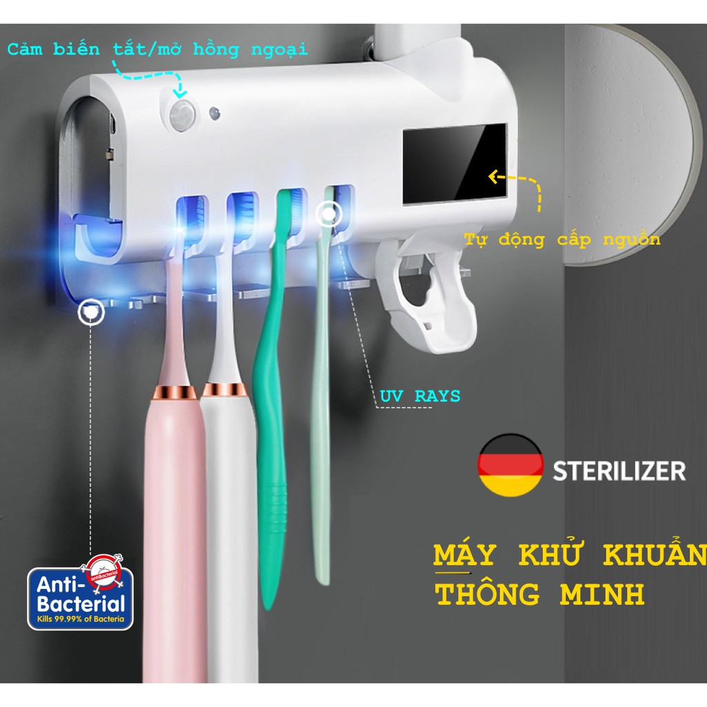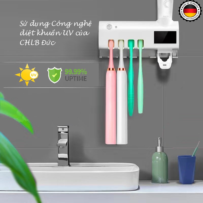 Máy khử khuẩn thông minh tiêu diệt khuẩn 99.99% vi khuẩn trên bàn chải đánh răng và các dụng cụ khác như dao cạo râu, bông tắm.