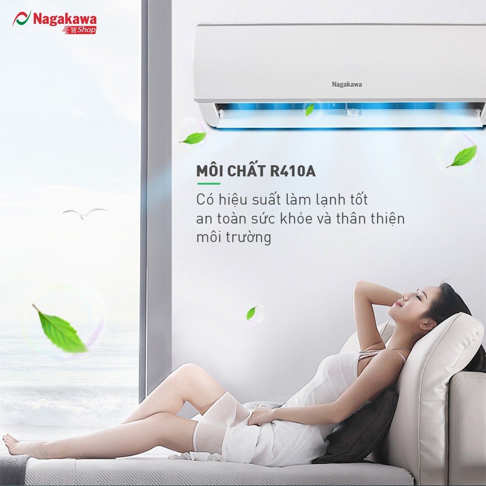 Môi chất mới R410A có hiệu suất làm lạnh tốt, an toàn cho sức khỏe, không gây cháy nổ, giảm thiểu hiệu ứng nhà kính và bảo vệ môi trường.