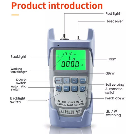 Máy đo công suất quang 2 trong 1 có đèn soi sợi quang: DÙNG CHO MẠNG GPON VÀ AONMáy đo công suất quang mạng GPON và AON Với chức năng trong một (2 in 1) vừa đo công suất sợi quang vừa soi xác định điểm đứt sợi quang sẽ mang đến cho kỹ thuật viên một sự tiện dụng gọn nhẹ trong quá trình xử lý sự cố.