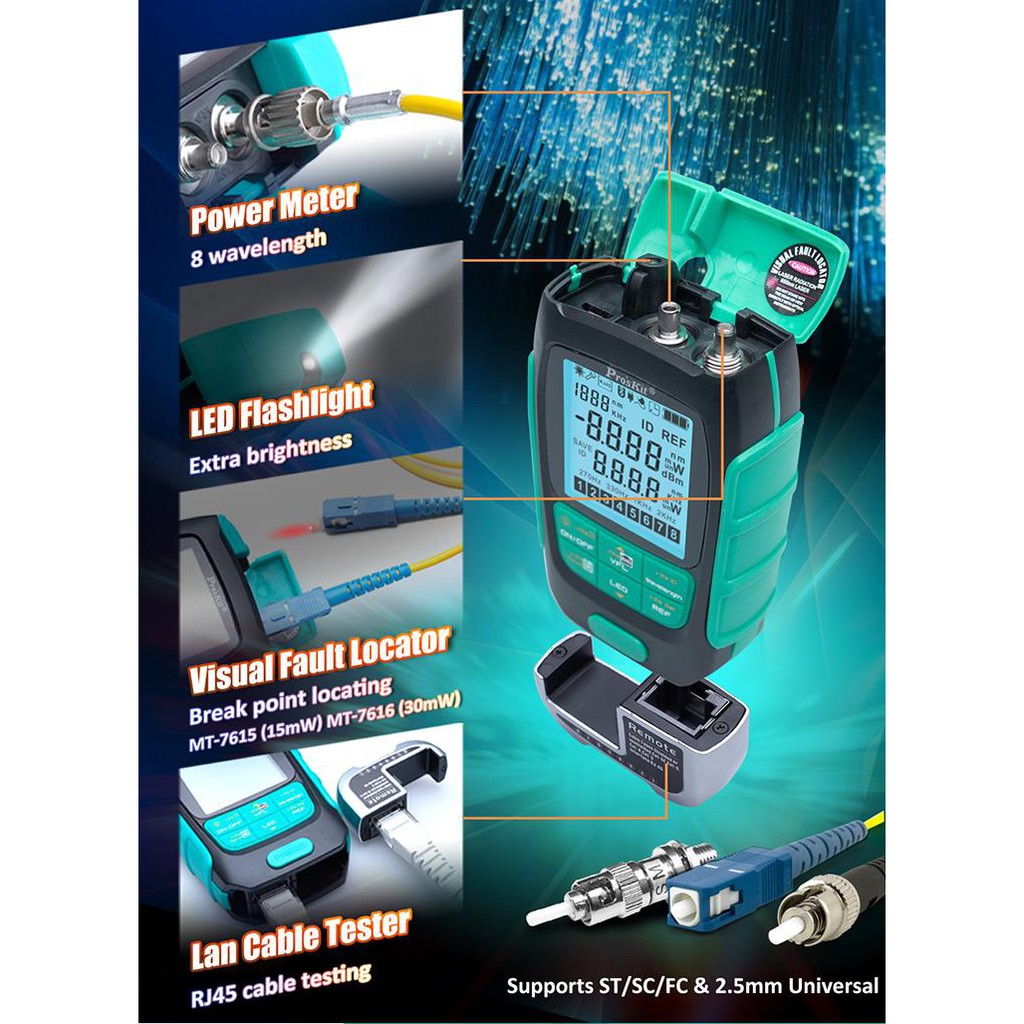 Máy đo công suất quang 4 trong 1 Pro's Kit MT-7615 OPM+VFL15km+LED+Test mạng