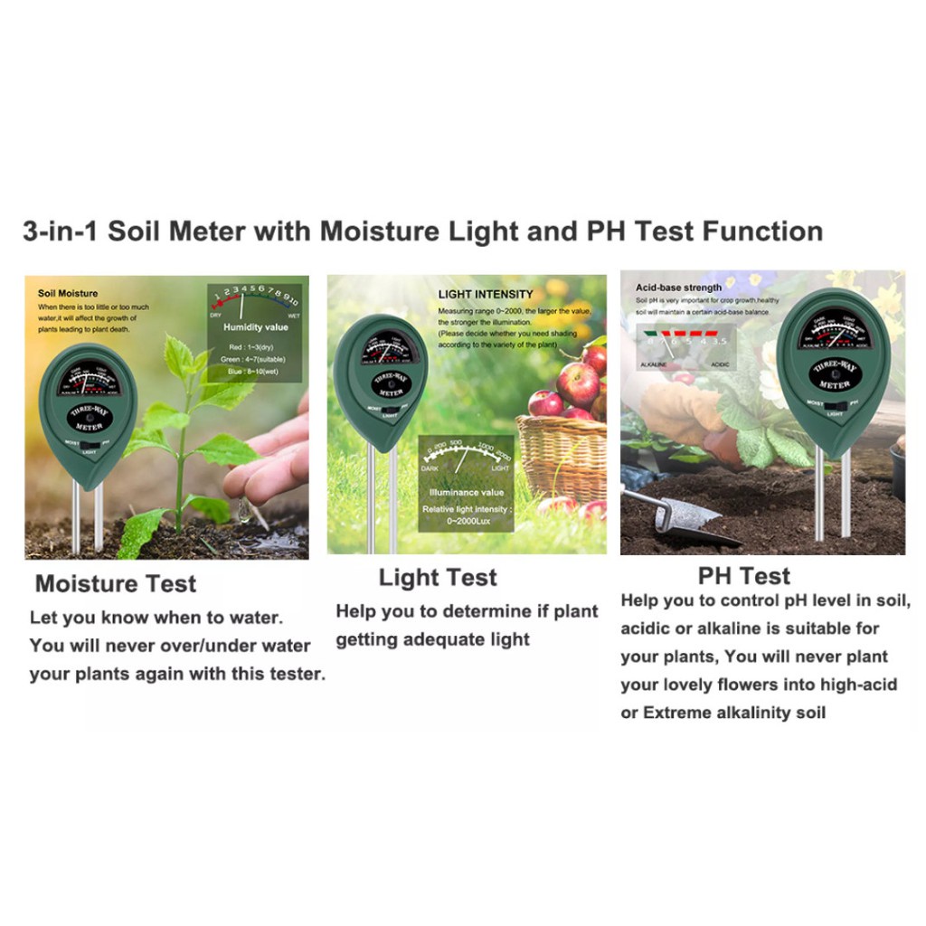 Máy Đo Độ Ẩm 3 Trong 1, Thiết Bị Kiểm Tra Độ Ẩm Của Đất, Làm Vườn, Làm Vườn, Trang Trại, Sân Vườn