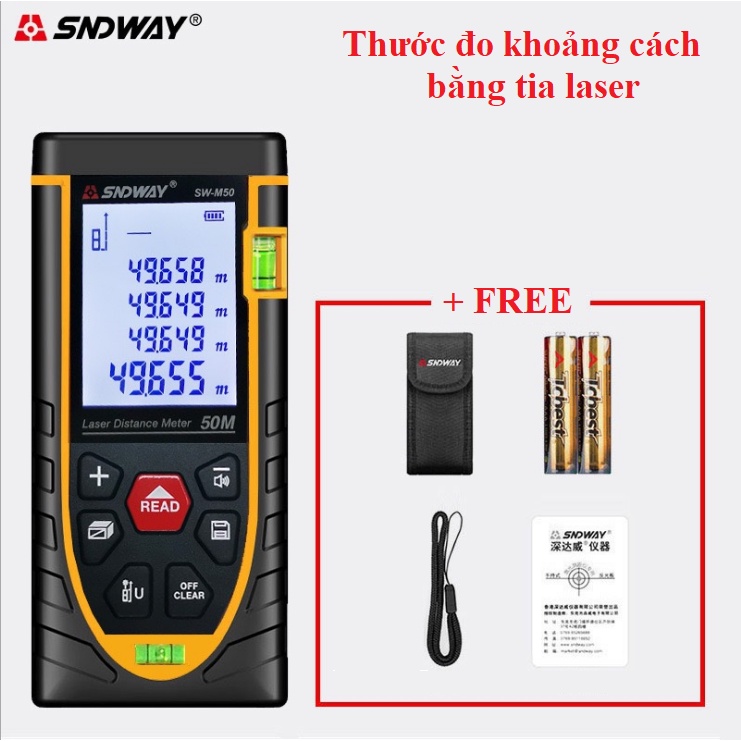 Thước đo khoảng cách bằng tia laser SNDWAY độ chính xác cao tặng kèm pin và túi đựng 50M 100M HÀNG CHÍNH HÃNG BẢO HÀNH UY TÍN thước đo điện tử thước laser