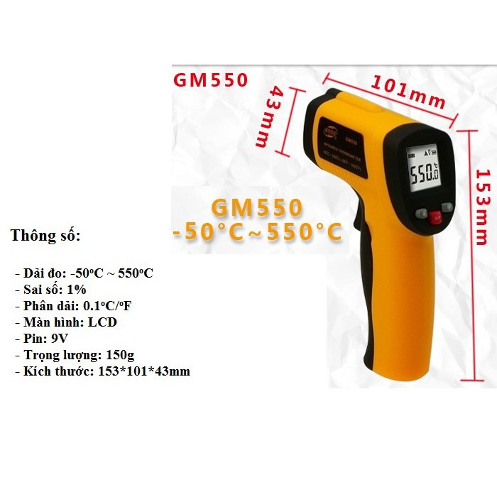 Nhà cửa & Đời sống > Dụng cụ & Thiết bị tiện ích > Dụng cụ > Dụng cụ đo lường || Máy đo nhiệt độ từ xa GM550Còn hàng