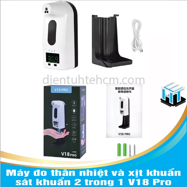 Nhà cửa & Đời sống > Chất khử mùi, làm thơm nhà > Khác || Máy đo thân nhiệt và xịt khuẩn/sát khuẩn 2 trong 1 V18 ProCòn hàng