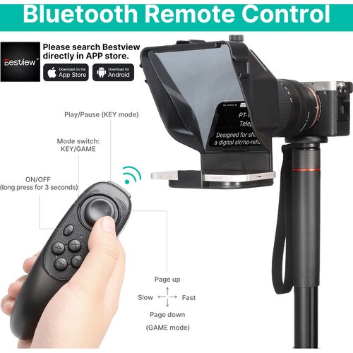 PT-15 Ulanzi đi kèm với một điều khiển từ xa có thể kết nối với điện thoại thông minh của bạn thông qua BT để tạm ngừng, tăng tốc hoặc giảm tốc độ các dòng, rất linh hoạt.