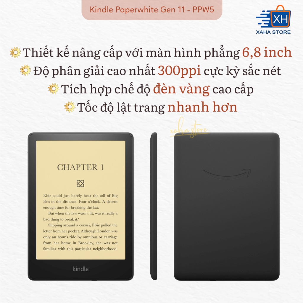 Giới thiệu Máy Đọc Sách Kindle Amazon Paperwhite 5 11th generation 2021 NEW 100% Đèn Vàng Màn Hình 6.8 Inch Chống Nước- Xaha Store