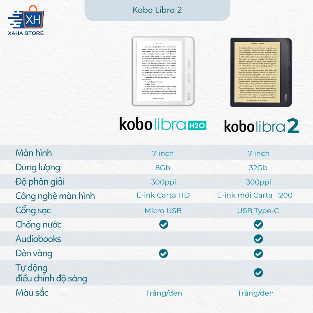 Giới thiệu Máy Đọc Sách Kobo Libra 2 - Bản Nâng Cấp của Kobo Libra H2O 7 inch Sạc Type C Tốc Độ Hiển Thị Nhanh Hơn - Xaha Store
