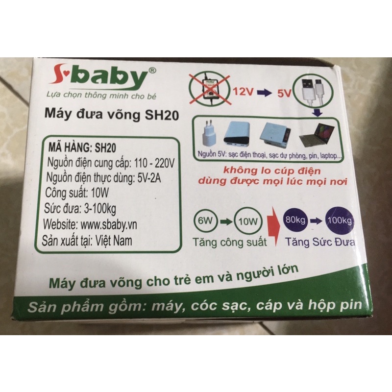 Máy đưa võng tự động Sbaby SH20 - Thế Hệ Máy Đưa Võng Mới Dùng Được Bằng Điện Hoặc Pin.🎀 Thông số kỹ thuật: