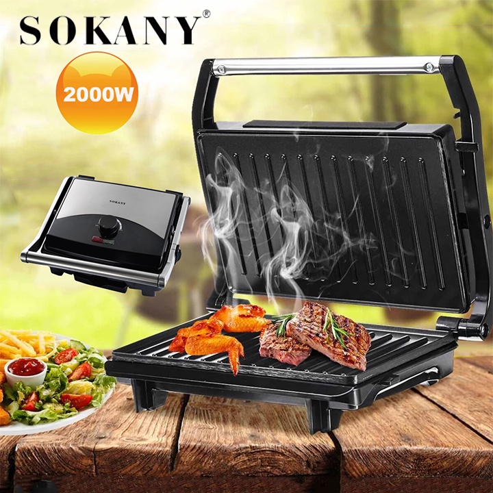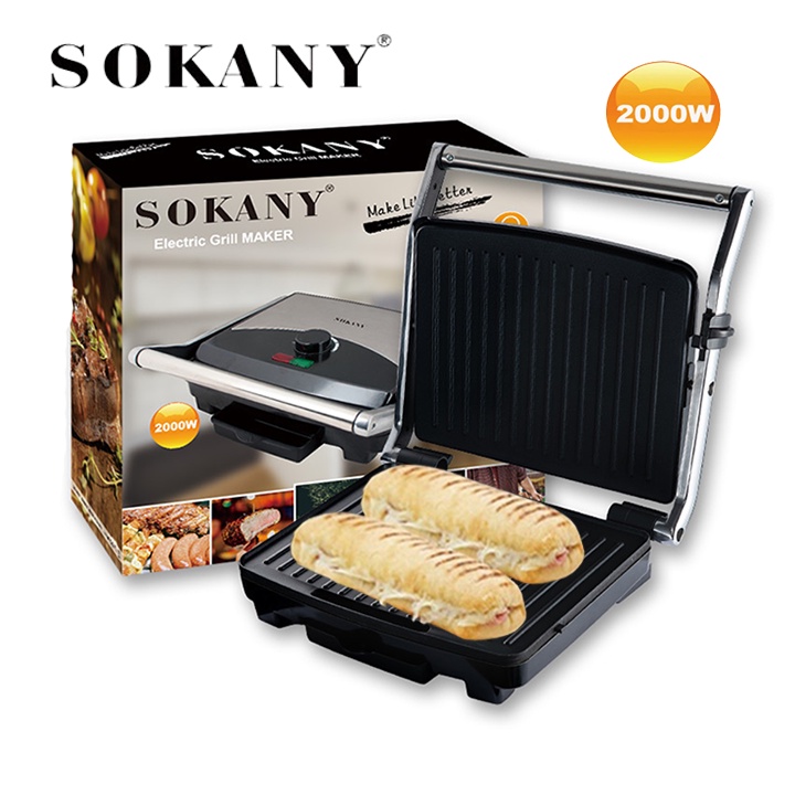 Giới thiệu Máy ép bánh mì, máy kẹp nướng bánh mỳ có chỉnh nhiệt 2000W Chính hãng SOKANY [BH 12 Tháng]
