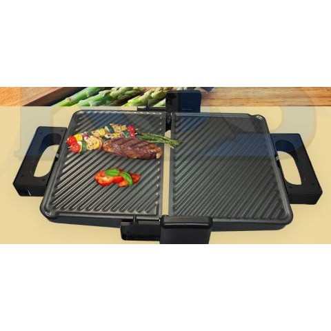 Khi mở ra 180 độ bạn có thể sử dụng như 1 chiếc vỉ nướng điện thông thường với 2 bên khay nướng với 2 nút điều chỉnh nhiệt độ khác nhau.Bạn có thể sử dụng như 1 chiếc máy nướng bánh Sandwich, hoặc nướng cá thịt.