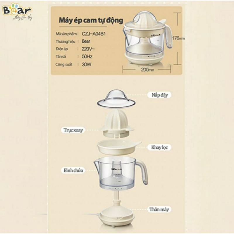 Thiết Bị Điện Gia Dụng > Đồ gia dụng nhà bếp > Máy ép, Xay sinh tố & Máy làm sữa đậu nành || MÁY ÉP CAM BEAR A04B1 ( PHIÊN BẢN QUỐC TẾ )Còn hàng
