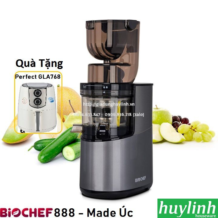 Máy ép trái cây Biochef 888 là dòng máy ép chậm cao cấp, phù hợp sử dụng cho nhà hàng, quán cà phê,… với công suất 400W, bảo hành tới 20 năm, sản xuất tại Australia.Huy Linh phân phối và bảo hành chính hãng tại Biochef Việt Nam