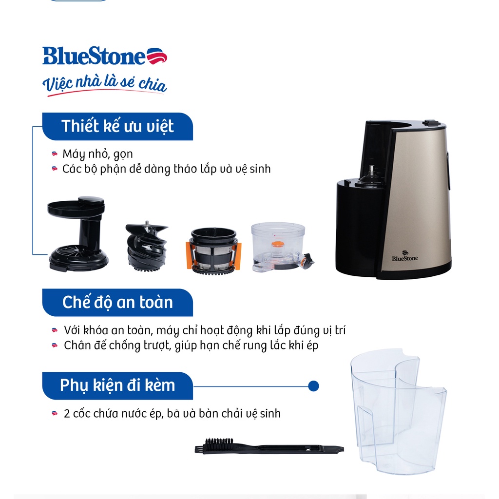 Thiết Bị Điện Gia Dụng > Đồ gia dụng nhà bếp > Máy ép, Xay sinh tố & Máy làm sữa đậu nành || Máy Ép Chậm BlueStone SJB-6556 - Công suất 150W - Thân máy thép không gỉ - Bảo hành chính hãng 2 nămCòn hàng