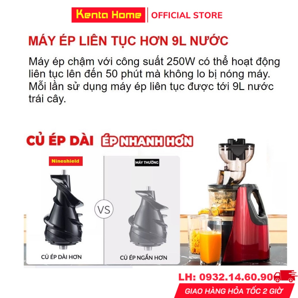 Máy ép chậm chính hãng Nineshield KB - F10B, Máy ép chậm trái cây hoa quả ép nguyên quả mạnh mẽ kiệt bã đến 97%,BH 1 Năm