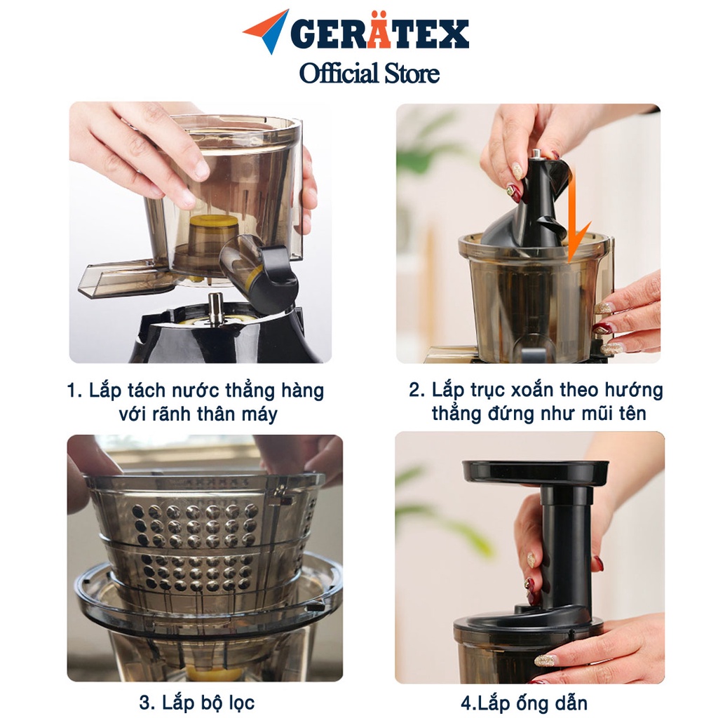 Thiết Bị Điện Gia Dụng > Đồ gia dụng nhà bếp > Máy ép, Xay sinh tố & Máy làm sữa đậu nành || Máy ép chậm Gerätex chất lượng CHLB Đức - Máy ép trái cây hoa quả tốc độ chậm chất lượng caoCòn hàng