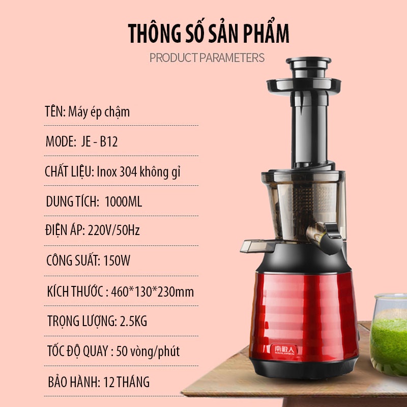 Máy Ép Chậm Hoa Quả CÁT Á, Máy Ép Trái Cây Hoa Quả Giữ 98% Lượng Nước, Ép Rau Củ Quả Chưa Tới 2 Phút Bảo hành 6 tháng