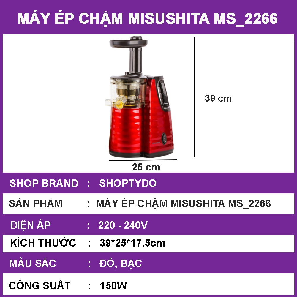 Thông tin chi tiết sản Máy ép chậm hoa quả MISUSHITA MS-2266, Máy ép trái cây: