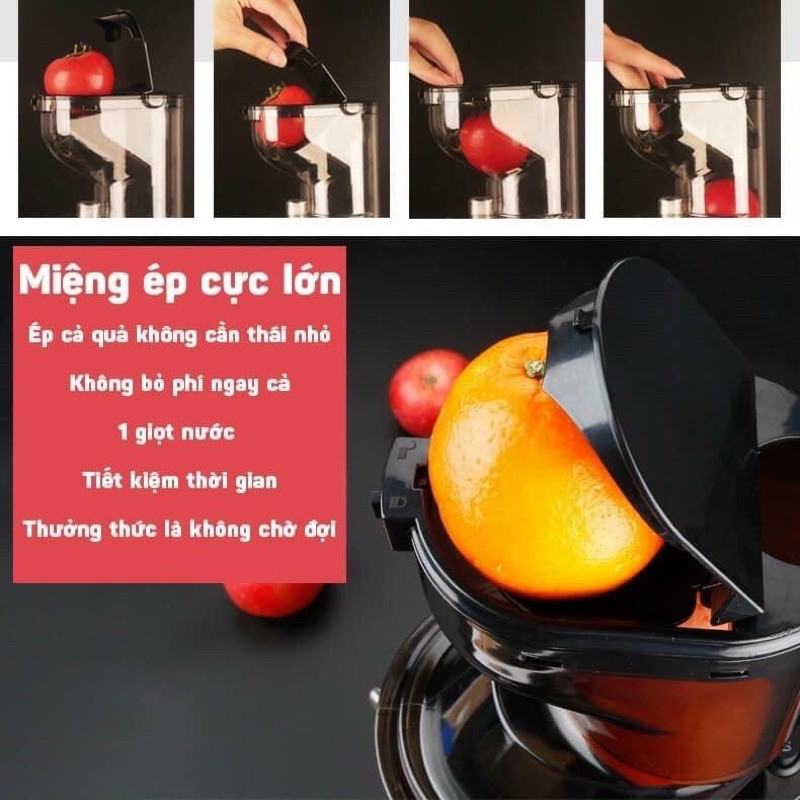 � Một ưu thế của dòng máy ép này là miệng to – bạn có thể ép cả quả mà không phải tốn công cắt nhỏ như dòng máy cũ “ miệng nhỏ” . Thêm 4 vòng xoắn ốc giúp việc ép nước quả mạnh mẽ hơn, vắt kiệt nước – cho nước tối đa, phân tách bã riêng cho nước ép ngon hơn.