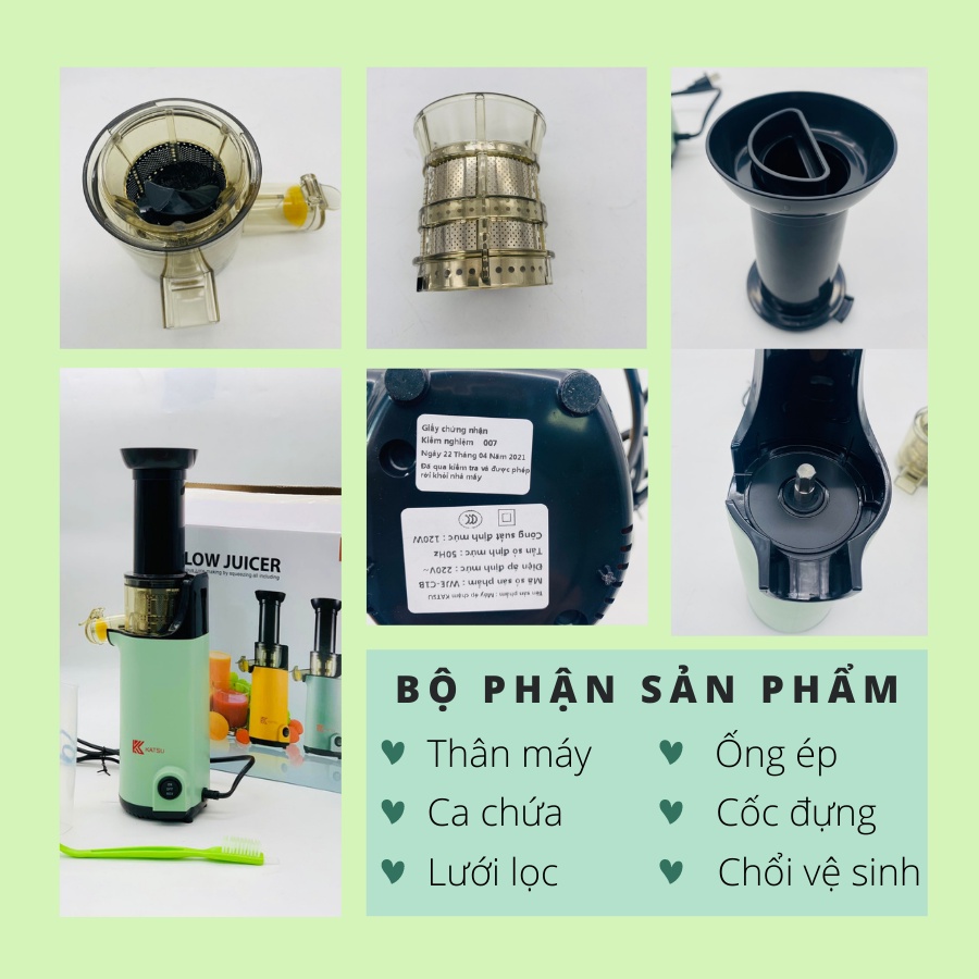 Máy ép chậm KATSU, máy ép trái cây siêu kiệt bã cực gọn nhẹ, dễ dàng vệ sinh - Bảo hành 12 tháng❤️ Ưu điểm: