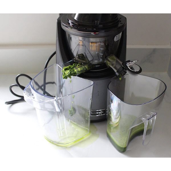 - Lượng nước ép từ máy ép tốc độ chậm mang lại nhiều hơn so với máy ép ly tâm. Ngoài ra, máy ép trái cây tốc độ chậm giữ được hầu hết các loại vitamin và các chất dinh dưỡng có trong rau củ quả, có lợi cho sức khỏe người dùng. So với máy ép thông thường thì lượng nước từ máy ép chậm Kuving gấp 1,5 lần và lượng vitamin gấp 5 lần. Nhờ đó, nước ép từ máy ép tốc độ chậm có màu sắc tự nhiên hơn, đậm đà hơn khi uống.