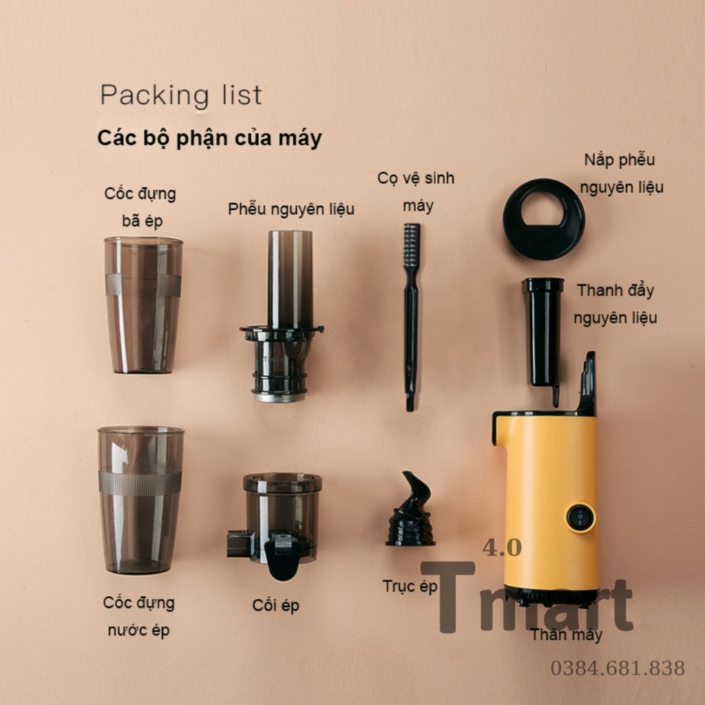 Máy Ép Chậm Mini Chính Hãng, Máy Ép Chậm Trái Cây Kiệt Nước Tiện Lợi Hot Nhất Mùa Hè Này -T-mart4.0T-mart4.0 CAM KẾT: