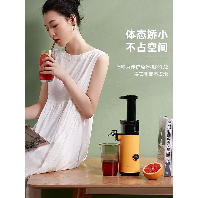 Máy ép chậm mini Mokkom có kiểu dáng nhỏ gọn, chiều cao chỉ 35.5cm và trọng lượng chỉ 1,39kg. Chiếc máy ép chậm mini này chỉ nhỏ bằng 1/3-1/4 những chiếc máy ép chậm cồng kềnh mà bạn thường thấy. Bạn có thể đặt máy ở bất cứ góc nào trong căn bếp của bạn mà không lo máy chiếm nhiều diện tích. Máy cũng dễ dàng mang theo.