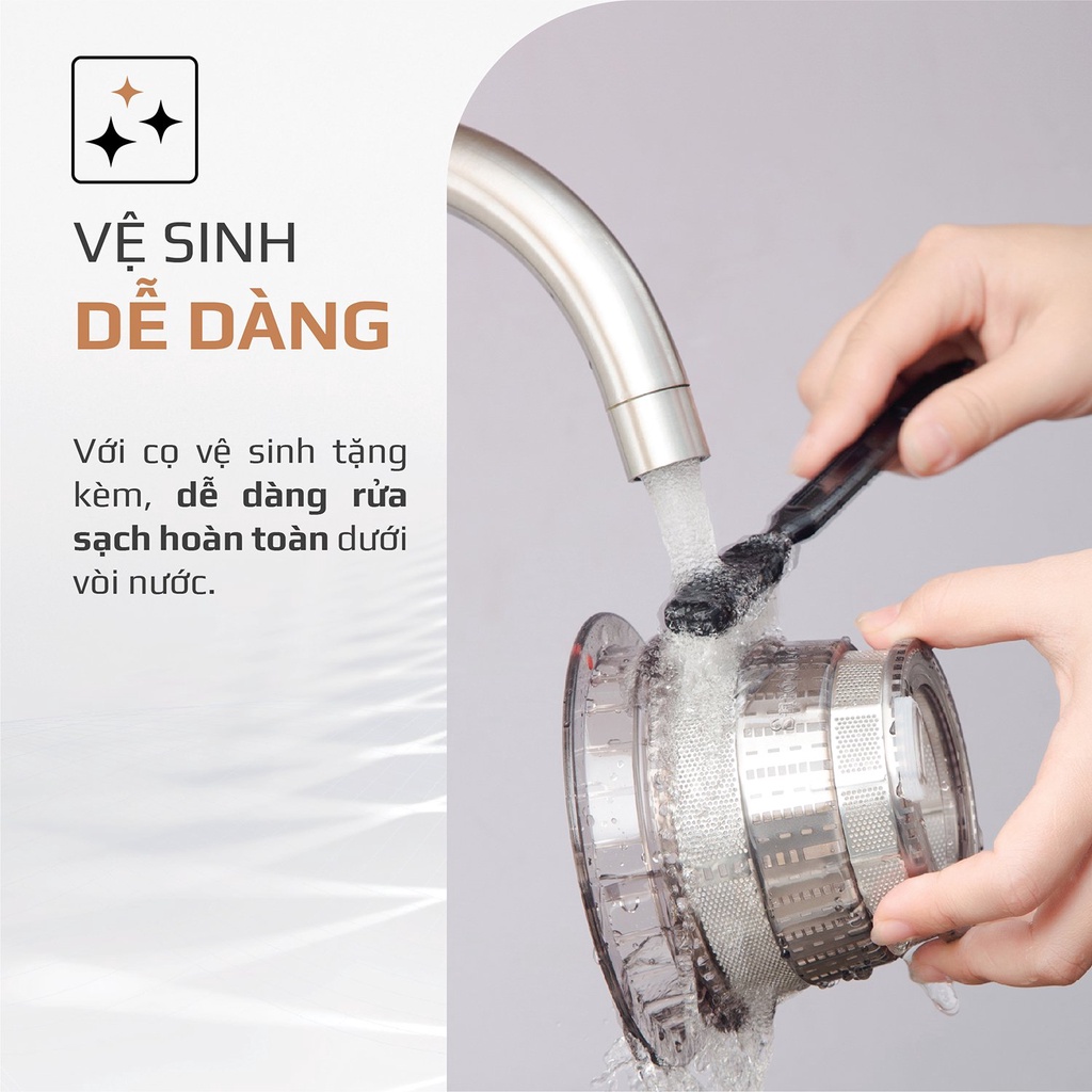 👉 Ép kiệt đến 98% đem lại lượng nước ép lớn nhất, nước ép trong, ít lợn cợn.