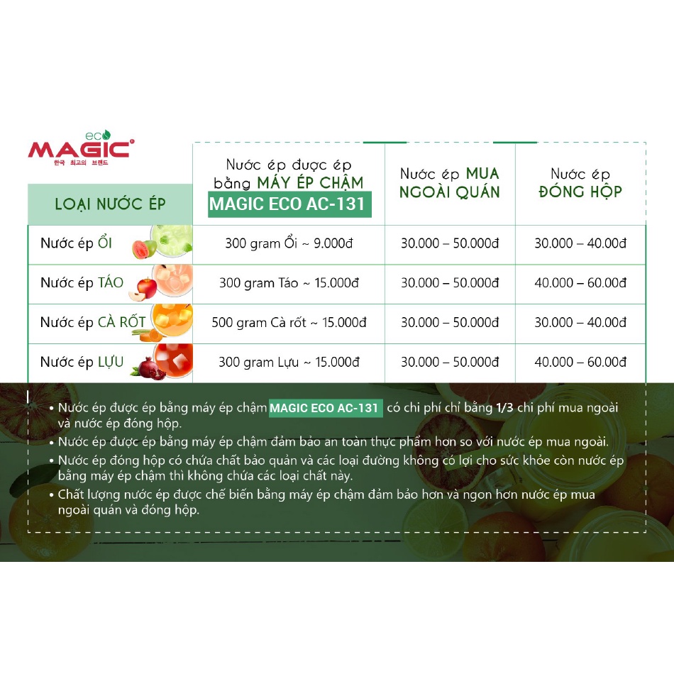 TÍNH NĂNG NỔI BẬT CỦA MÁY ÉP CHẬM MAGIC ECO AC131Thương hiệu Hàn Quốc.