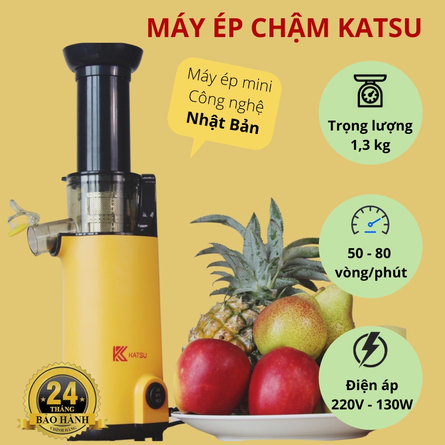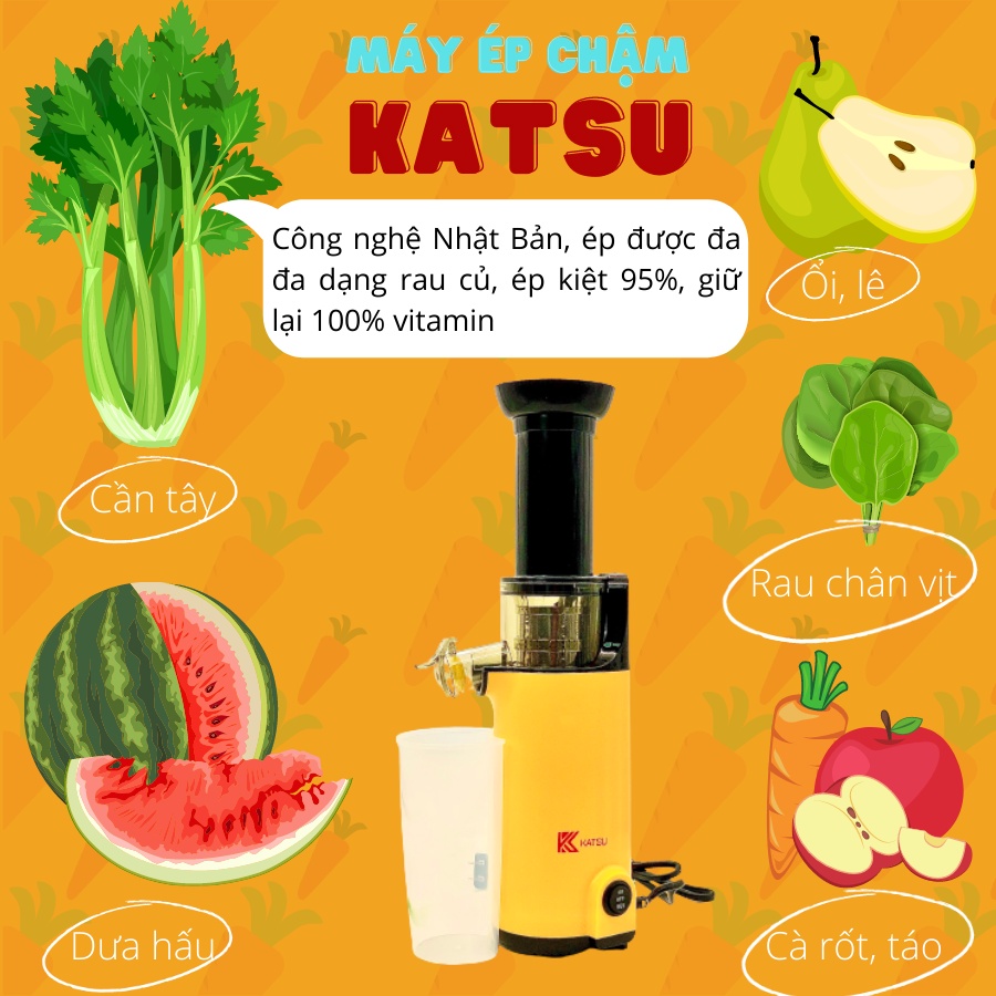 Máy ép chậm trái cây KATSU, ép trái cây, rau củ kiệt bã, công nghệ Nhật Bản - Bảo hành 12 tháng