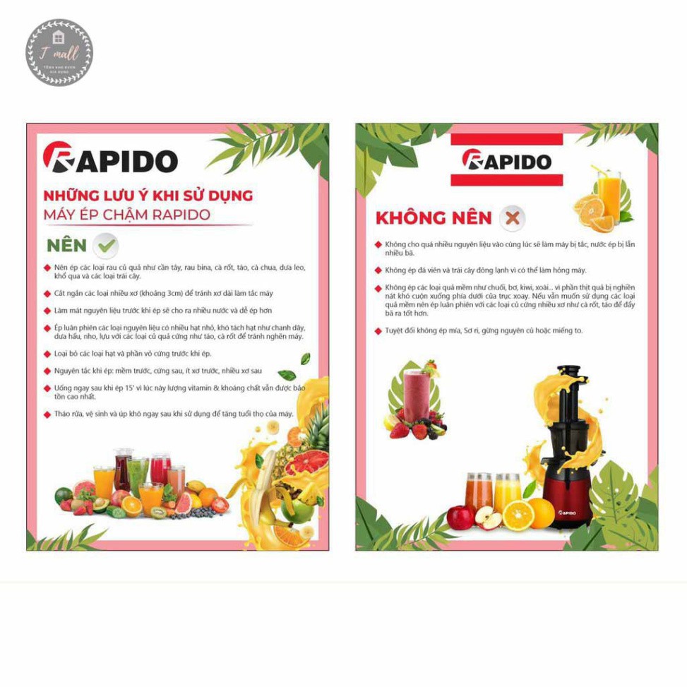 Máy ép chậm trái cây Rapido RSJ150 - Ép hoa quả, ép rau củ, kệt bã, công nghệ Đức - Bảo hành 12 tháng