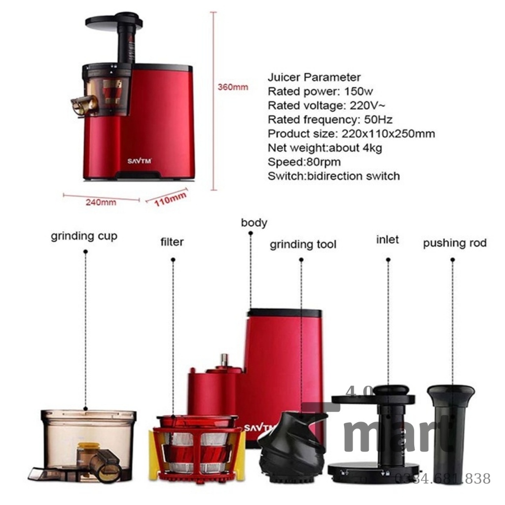 Máy ép chậm trái cây rau củ SAVTM ĐỜI MỜI NHẤT máy xay hoa quả ép chậm siêu bền -Tmart4.0Tmart4.0 CAM KẾT: