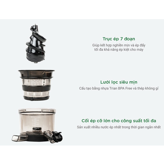 Với 𝗣𝗿𝗼𝗺𝗶𝘅 𝗣𝗠-𝟴𝟬𝟬, bạn Không Cần Sơ Chế thực phẩm, nhét hết vào và nhìn em nó chiến thôi. Với 1 bộ cối đầm và dung tích lớn lên tới 450ml, bạn có thể thể nhét vào đó 1 lượng lớn ra củ quả 𝗴𝗮̂́𝗽 𝟭,𝟱 𝗹𝗮̂̀𝗻 bình thường.--> Sử dụng 𝗻𝗵𝗮̀𝗻 𝗵𝗼̛𝗻 cực nhiều, không phải cắt nhỏ thực phẩm, tiết kiệm thời gian chuẩn bị và điều này đặc biệt quan trọng với các cửa hàng đồ uống. Trục ép 7 đoạn cực chất và lưới lọc thép không gỉ sẽ có nhiệm vụ ép kiệt tối đa thực phẩm được đưa vào. Tất cả sẽ được thúc đẩy bằng 1 động cơ cảm ứng công suất 𝟰𝟬𝟬𝗪 - đây chính là niềm tự hào của Promix � Xin nhắc lại, động cơ cảm ứng là ưu thế công nghệ số 1 của Promix so với các dòng máy trên thị trường.