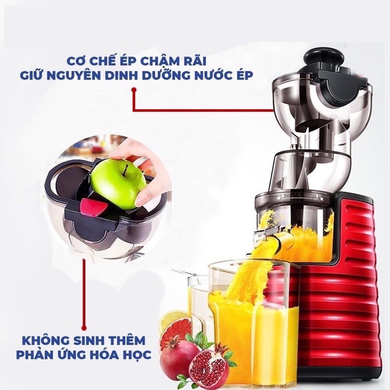 - Thiết kế thông minh nên máy hoạt động rất êm ái, tiếng ồn thấp chỉ khoảng 45dB giúp bạn có thể ép được mọi lúc, mọi nơi.