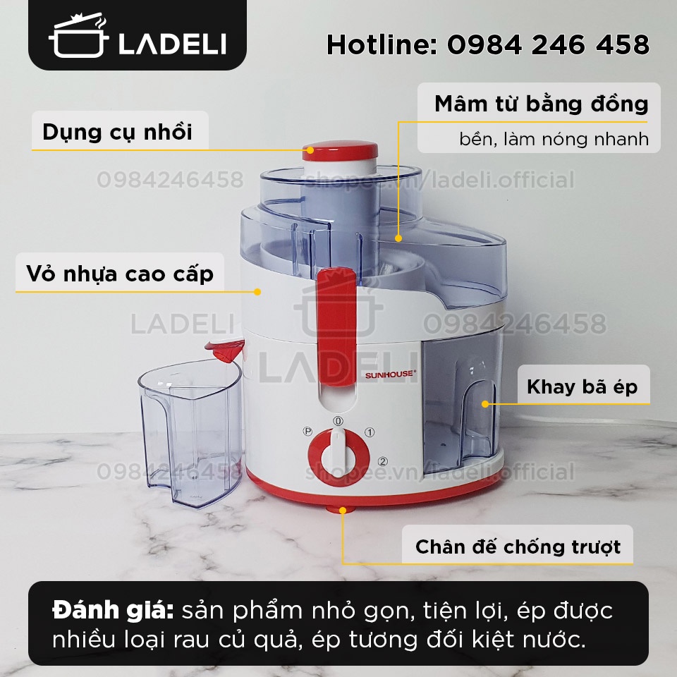 🟨⬛ Đặc điểm nổi bật của máy ép hoa quả SUNHOUSE SHD5520:✱ Ép được nhiều loại rau, củ, quả