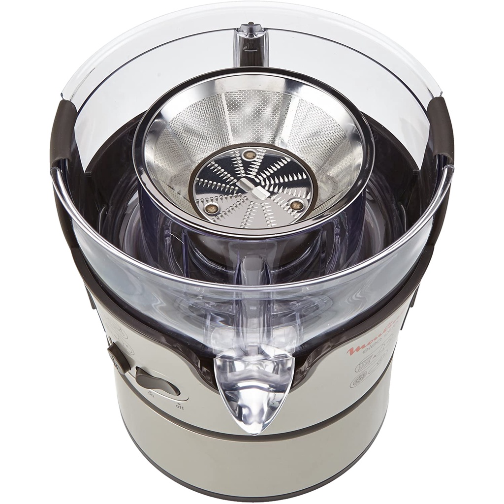 - Máy ép hoa quả và vắt cam Moulinex Elea Duo JU385H có chứa một trục cán giúp nghiền trái cây và rau củ thành bã. Phần bã xơ này sau đó sẽ được ép lại lần nữa qua một màng lọc. Nhờ vậy, phần nước ép sẽ được vắt triệt để trong khi phần bã sẽ bị loại bỏ.