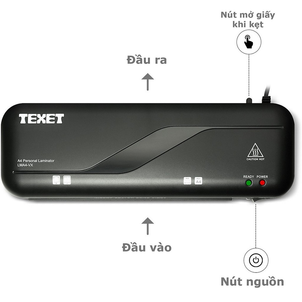 Máy ép nhựa dẻo plastic TEXET LMA4-VX Ép ảnh tài liệu khổ A4 Tặng kèm màng ép nhựa lụa mọi kích cỡ chính hãng tiện dụng