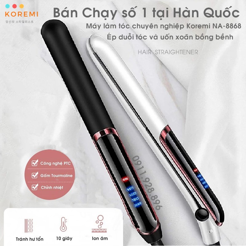 ⚠️ LƯU Ý: SẢN PHẨM CÓ DÁN TEM BẢO HÀNH CHÍNH HÃNG. ĐỂ KIỂM TRA HÀNG CHÍNH HÃNG, QUÝ KHÁCH VUI LÒNG QUÉT MÃ QR-CODE TRÊN SẢN PHẨM, HOẶC NHẮN TIN SMS THEO CÚ PHÁPMÁY ÉP TÓC CAO CẤP KIỂU HÀN QUỐC Koremi NA-8868 - Phiên Bản Cải Tiến 2022 - Hoàn Toàn Mới