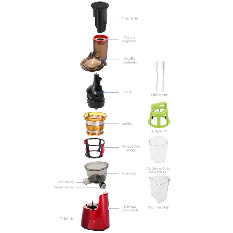 - Chức năng: Ép trái cây, rau củ, hạt ngũ cốc