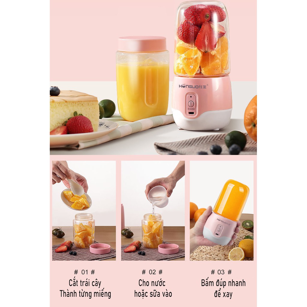 Máy ép trái cây mini cầm tay, máy xay sinh tố cầm tay mini nhỏ gọn 4 lá, 6 lá kèm dây sạc