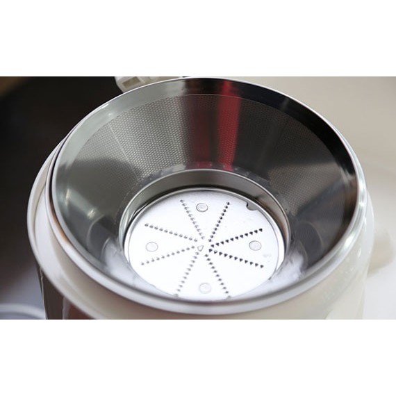 Lưới lọc và dao xay là chất liệu sắt không gỉ, đảm bảo vệ sinh an toàn thực phẩm cho người dùng trong quá trình sử dụng.