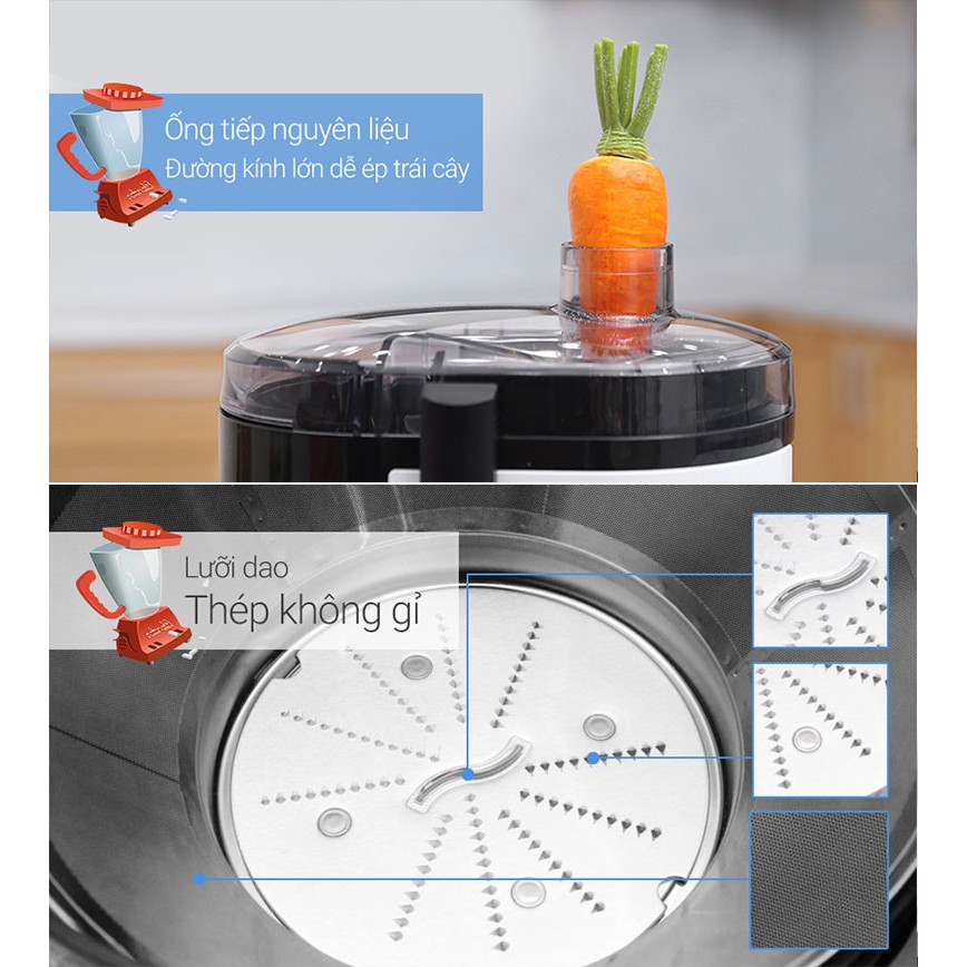 Máy ép hoạt động với công suất 200-220W, giúp xay ép trái cây nhanh chóng, tiết kiệm thời gian, bạn và gia đình sẽ có ngay những ly nước bổ dưỡng cho sức khỏe.