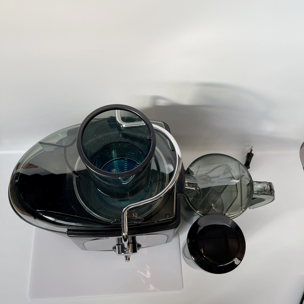 - Vỏ ngoài của máy được làm bằng inox và nhựa cao giúp cho việc vệ sinh máy sau khi sử dụng dễ dàng. Phần nắp máy và khoang chứa bã được làm bằng nhựa trong suốt nên bạn có thể quan sát rõ quá trình ép.